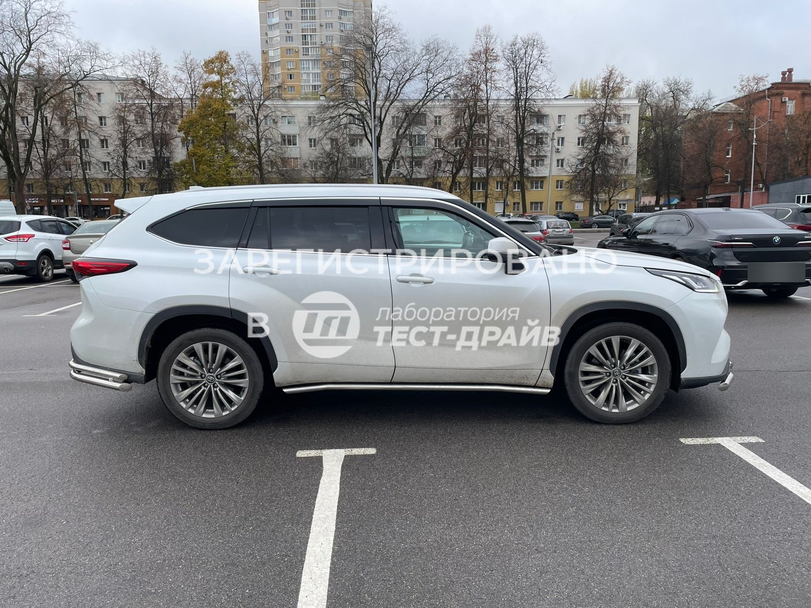 Установка декоративной защиты и порогов на Toyota Highlander в Омске
